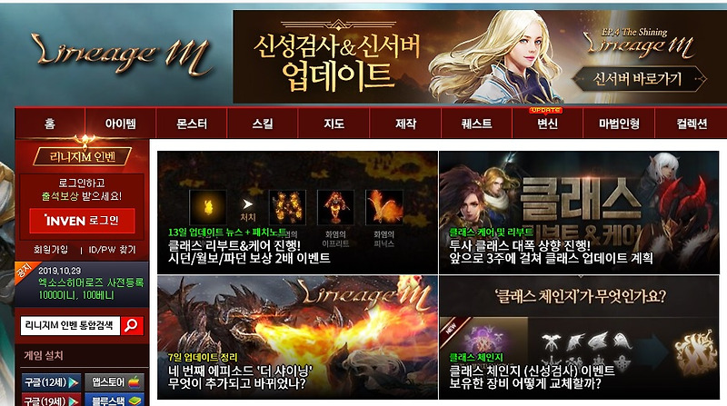 리니지m 인벤활용 이번주 점검내용은 9싸울 테스트 혈맹레이드 성공 사냥터추천 네이버 블로그